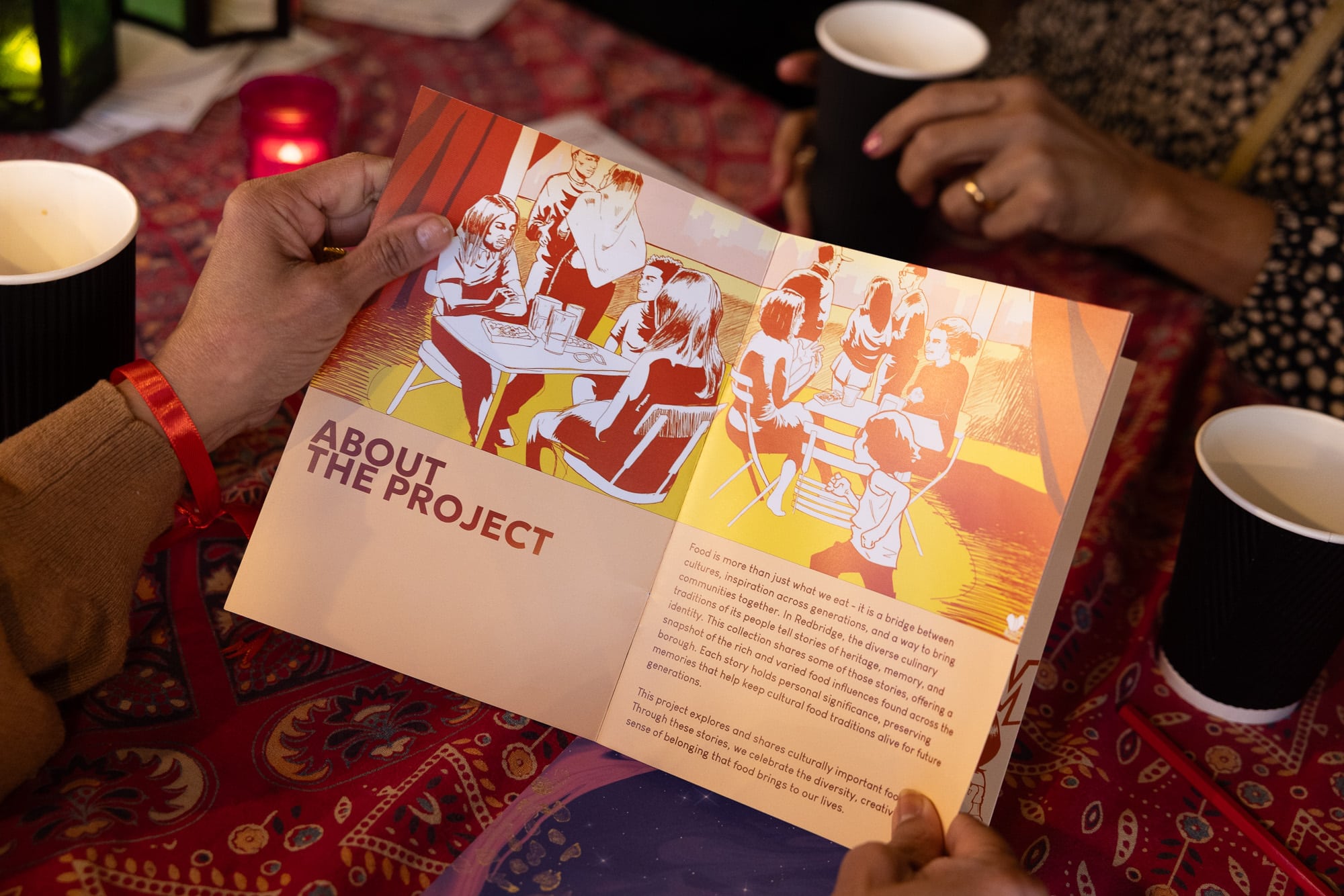 Working with Hackney School of Food, we curated a culturally-rich, four-course menu inspired by local stories from people in Redbridge, with live performances reflecting the stories we had collected, written and directed by Mia Jerome and performed at the Ilford Exchange.