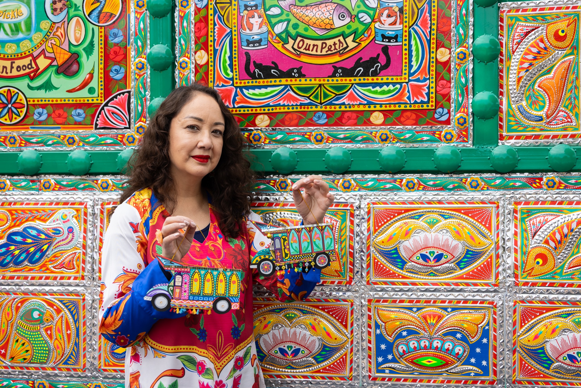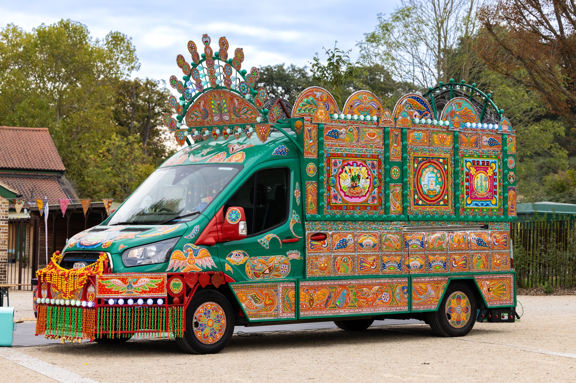 The panels were created in Pakistan by expert truck artist Abid Bhai and brought to life in the UK by local blacksmith, Felicity Jones, who customised the electric van. The project has also been supported by The Leap in Bradford and local artists Momtaz Begum-Hossain, Sheyamali Sudesh and light artists Bailes+Light, all overseen by Colours of Redbridge and a group of dedicated Community Producers.